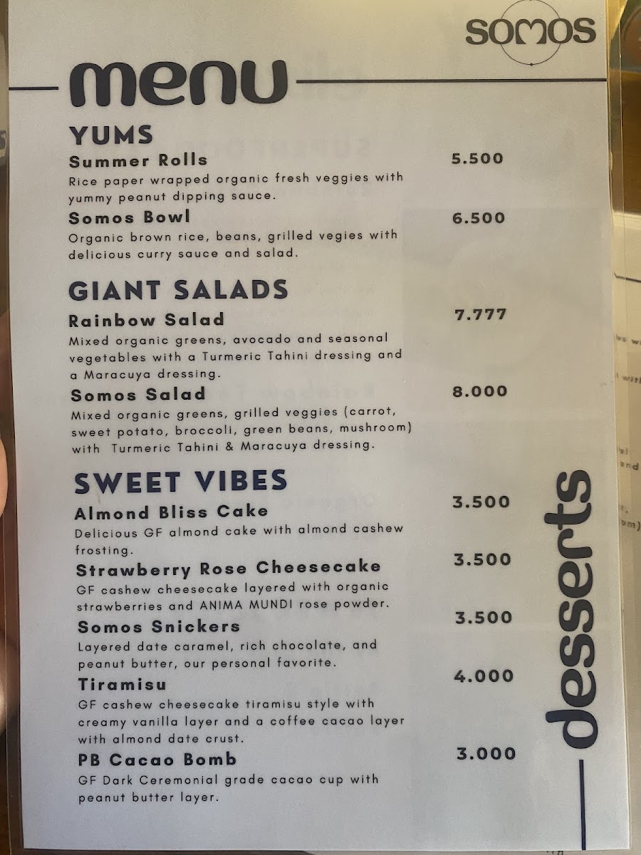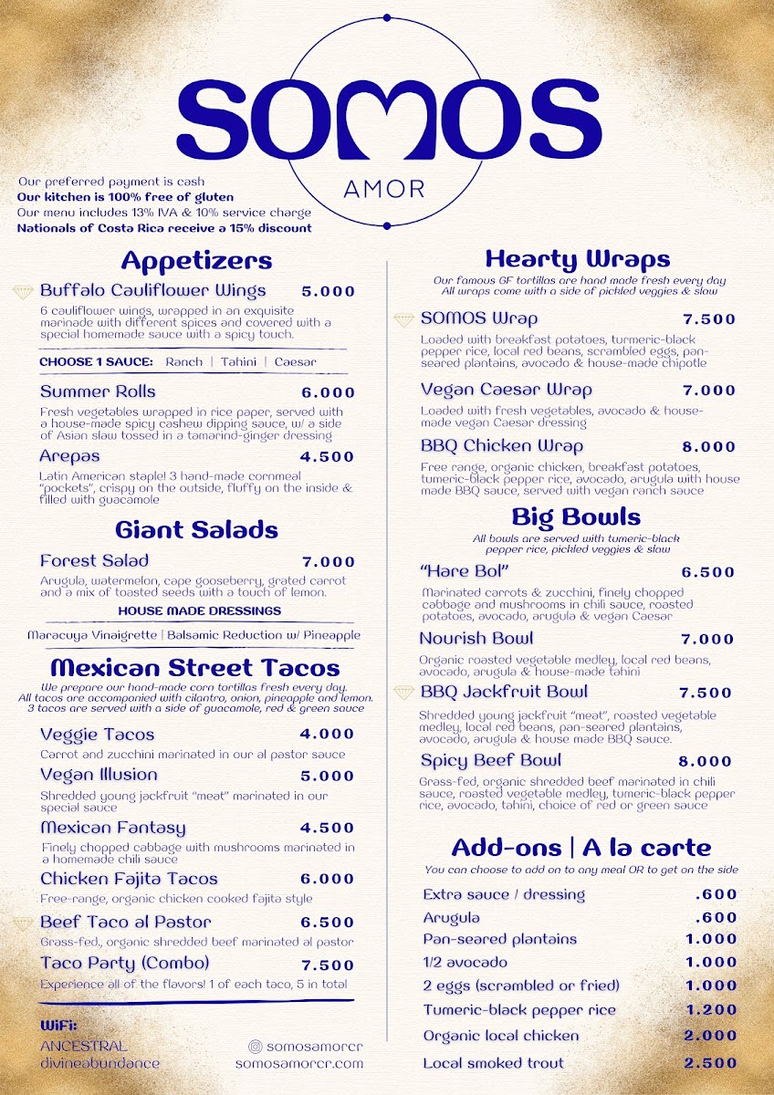 SOMOS Amor: Cafe & Elixir Lounge Menu
